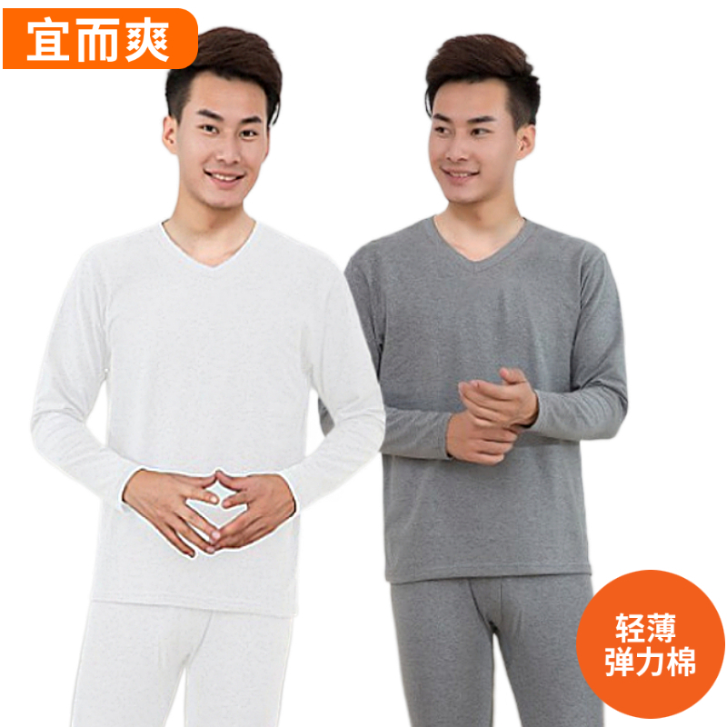 宜而爽纯棉秋衣秋裤男V领加肥加大男士超薄弹力棉中青年保暖内衣