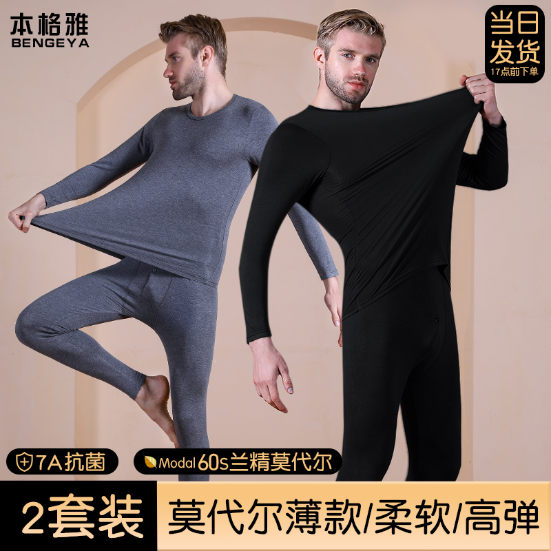 本格雅莫代尔秋衣秋裤套装男士薄款圆领春秋打底修身青年保暖内衣