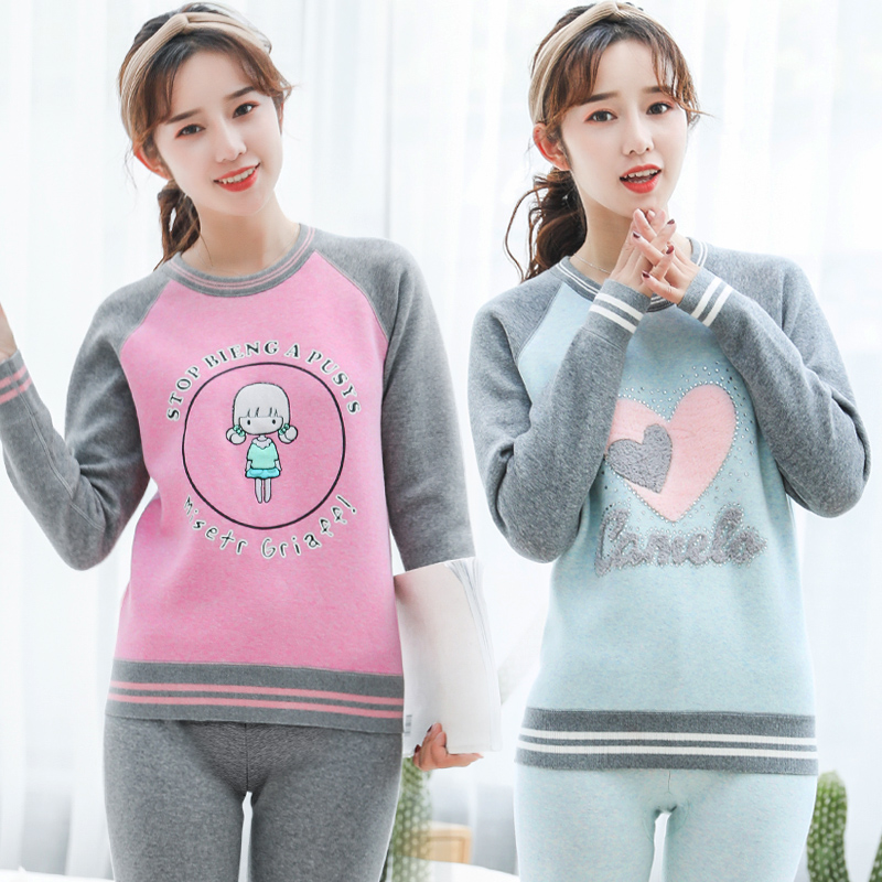 少女青年保暖内衣加绒加厚女德绒初高中大童学生秋衣秋裤套装冬季