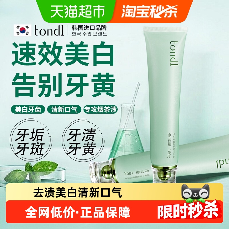Tondi不含氟美白牙膏去黄去牙渍去烟渍清新口气亮白留香呵护牙齿