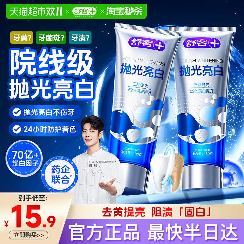 舒客双抗美白牙膏去黄去牙渍烟渍净化嘴巴异味成人正品男士溶菌酶