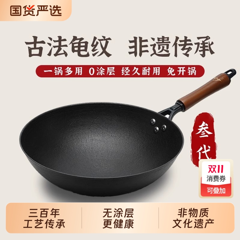 正品传统老式铁锅无涂层家用熟铁炒菜锅不粘锅适用燃气灶专用炒锅