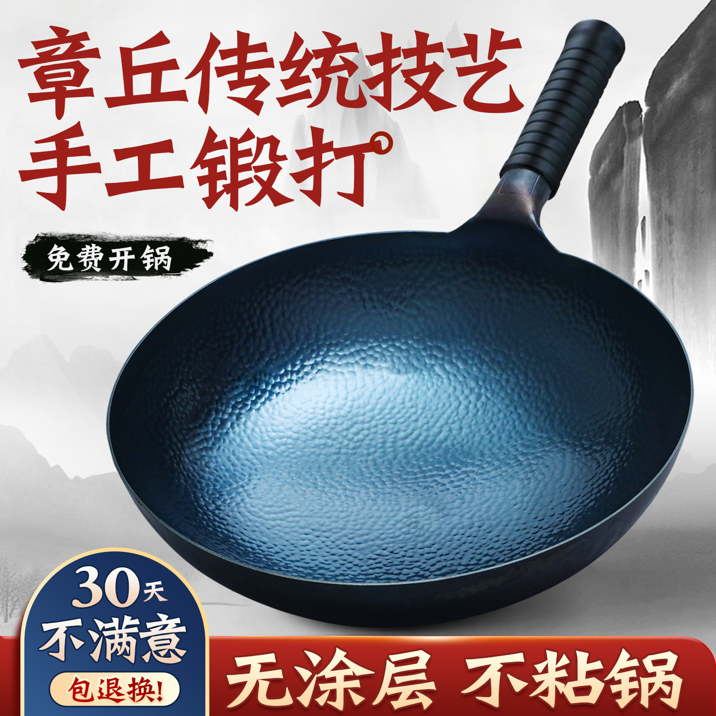 章丘炒菜锅传统铁锅官方旗舰老式炒锅家用不粘锅无涂层燃气灶适用