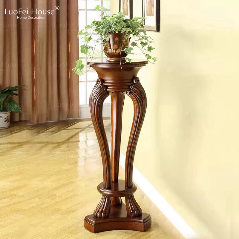 LUOFEIHOUSE/美式花架实木客厅手工雕刻镂空中式落地盆景装饰架