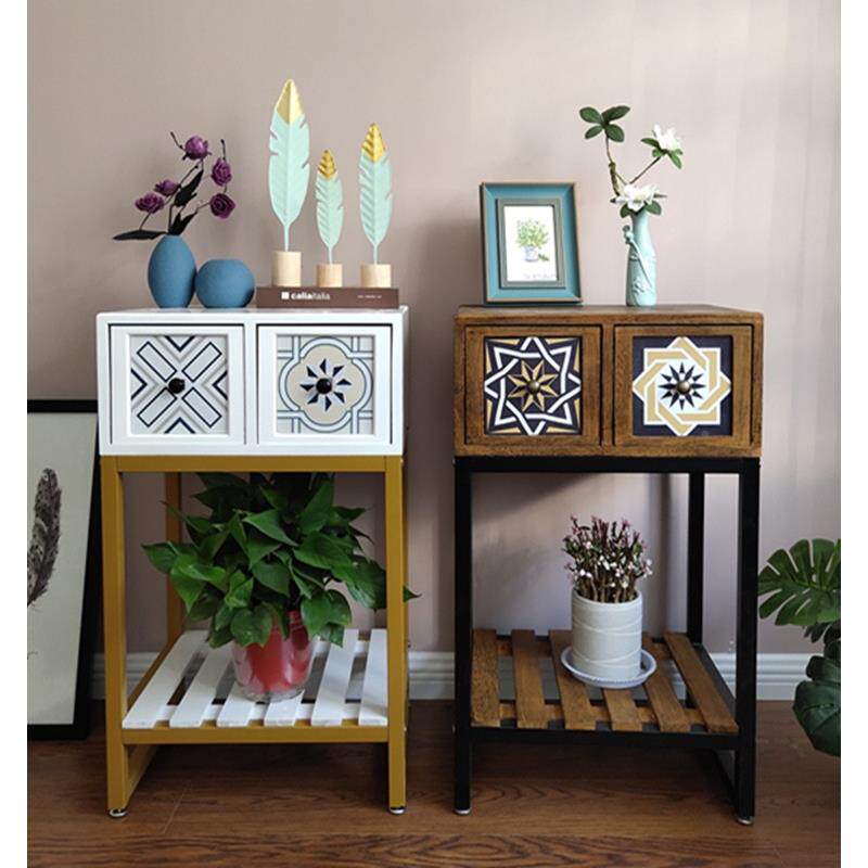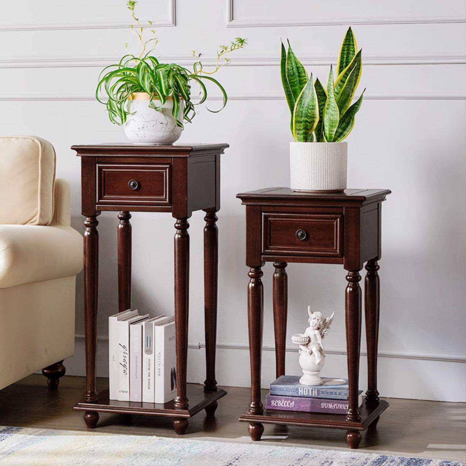 宜宝易森美式花架全实木花架客厅置物架带抽屉花几复古风格花盆架