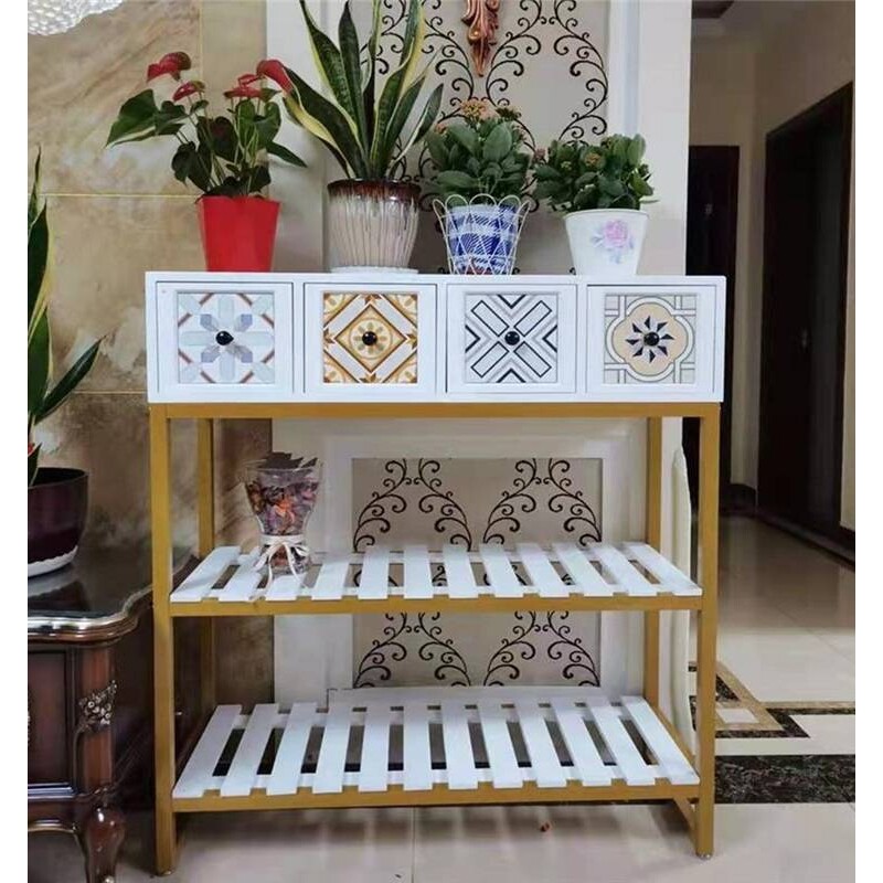 美式乡村复古铁艺三四层花架室内户外花园阳台庭院花盆架置物搁架