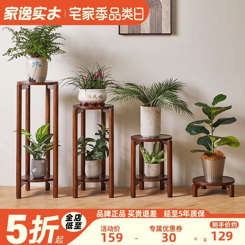 家逸花架实木置物架客厅室内中式现代简约花盆架美式高低花几落地