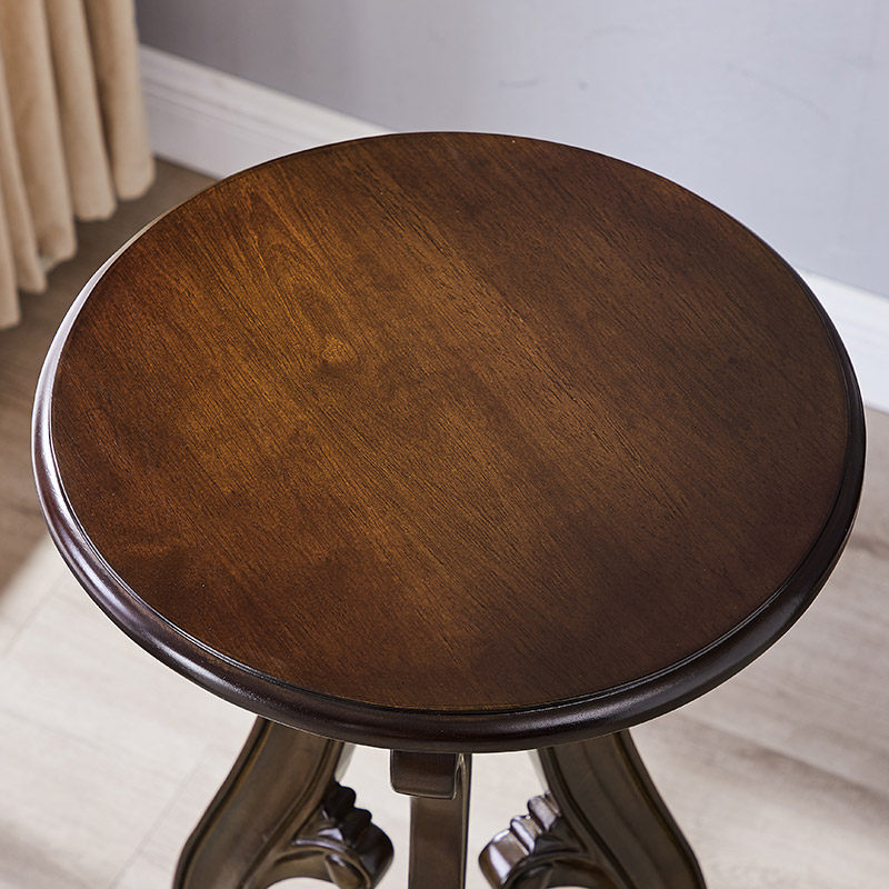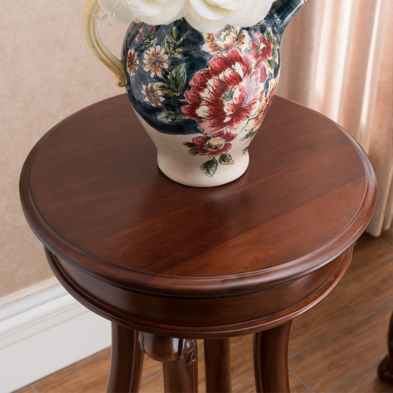 美式实木花架花几仿古典圆形落地客厅盆景架欧式花台室内高脚架子
