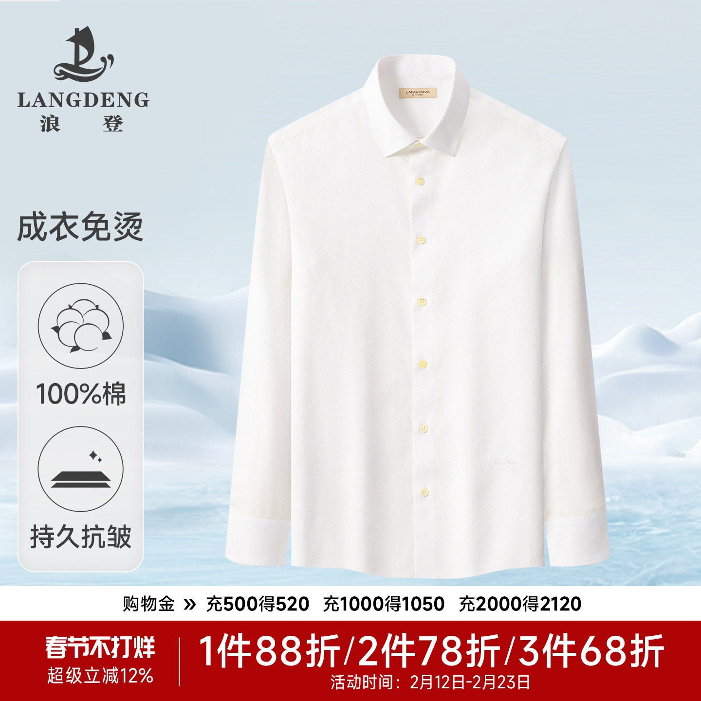 【全棉免烫】浪登长袖白衬衫高端25秋季纯棉商务正装中年男士衬衣