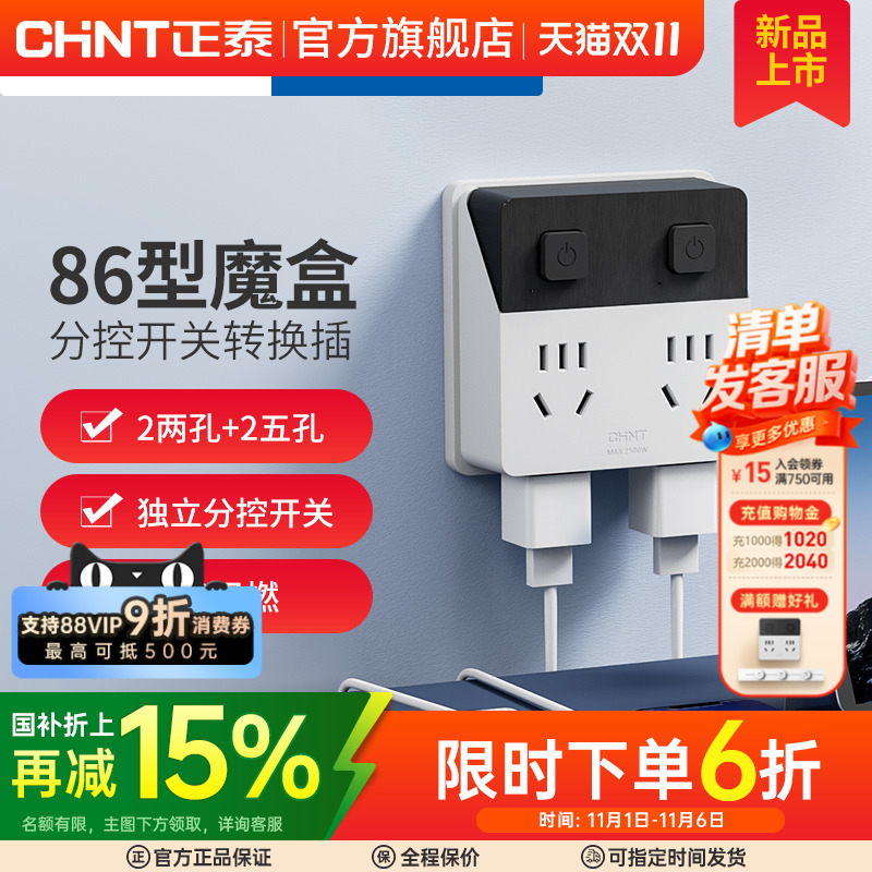 德力西分控插座排插独立开关插排多功能插板多孔插板插线板拖线板