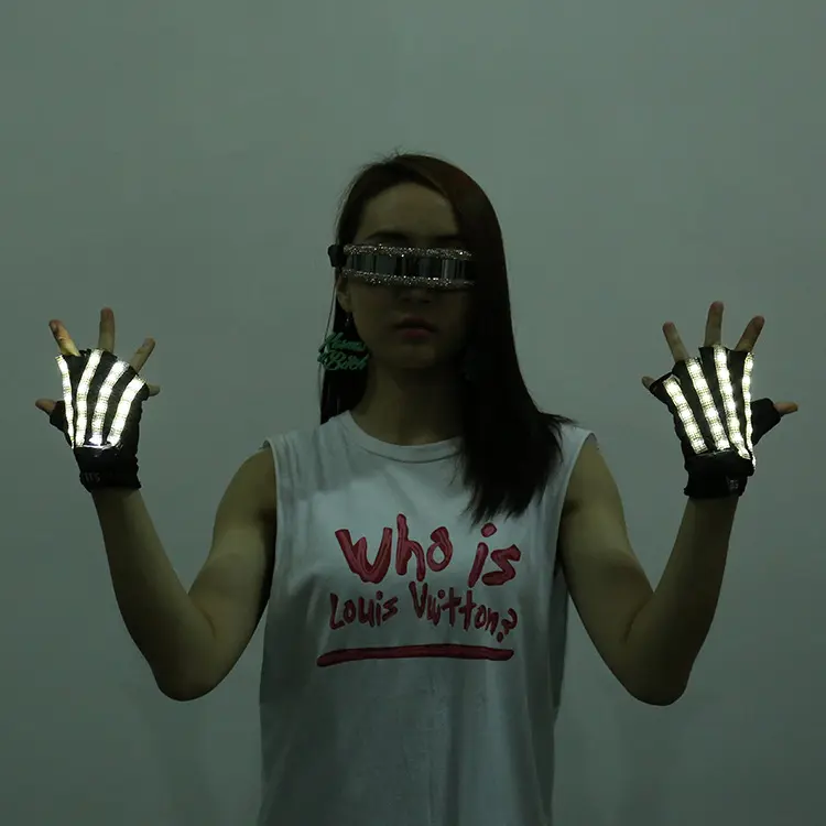led发光手套发光眼镜电池款半指白光手套圣诞万圣节酒吧v道具