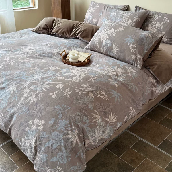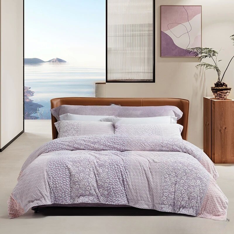 韩国进口床上用品四件套柔软莫代尔田园碎花被子床单床盖枕套两用