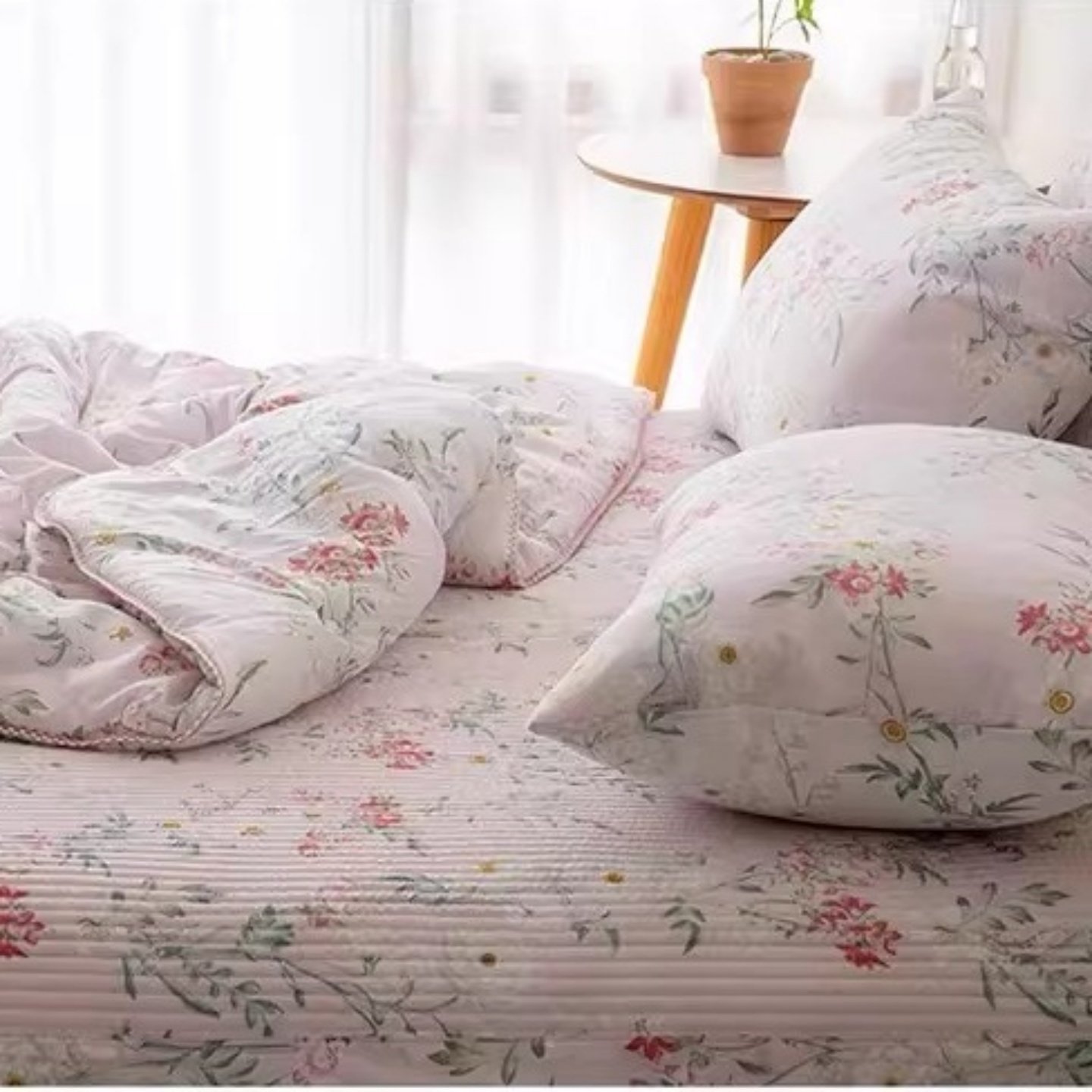 韩系INS博主风纯棉四件套全棉花卉色织水洗棉被套床笠款床上用品