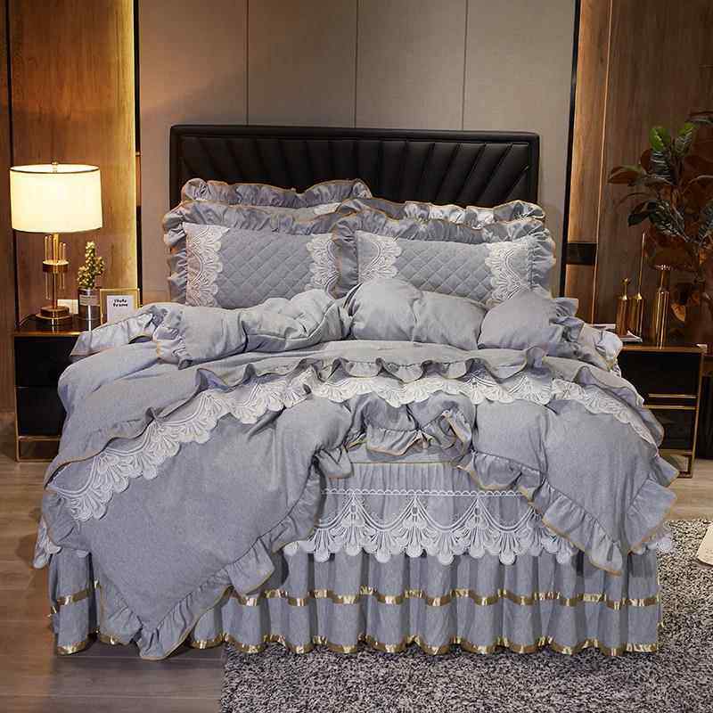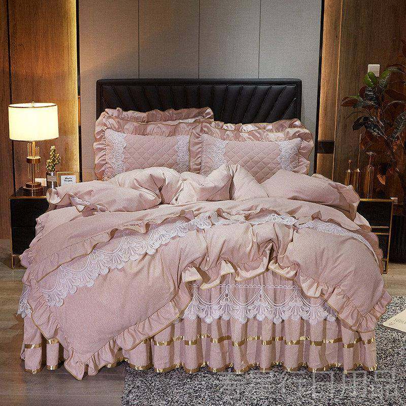 韩国荷叶边纯棉床盖三件套花边款炕盖夹棉四件套四季可用床上用品