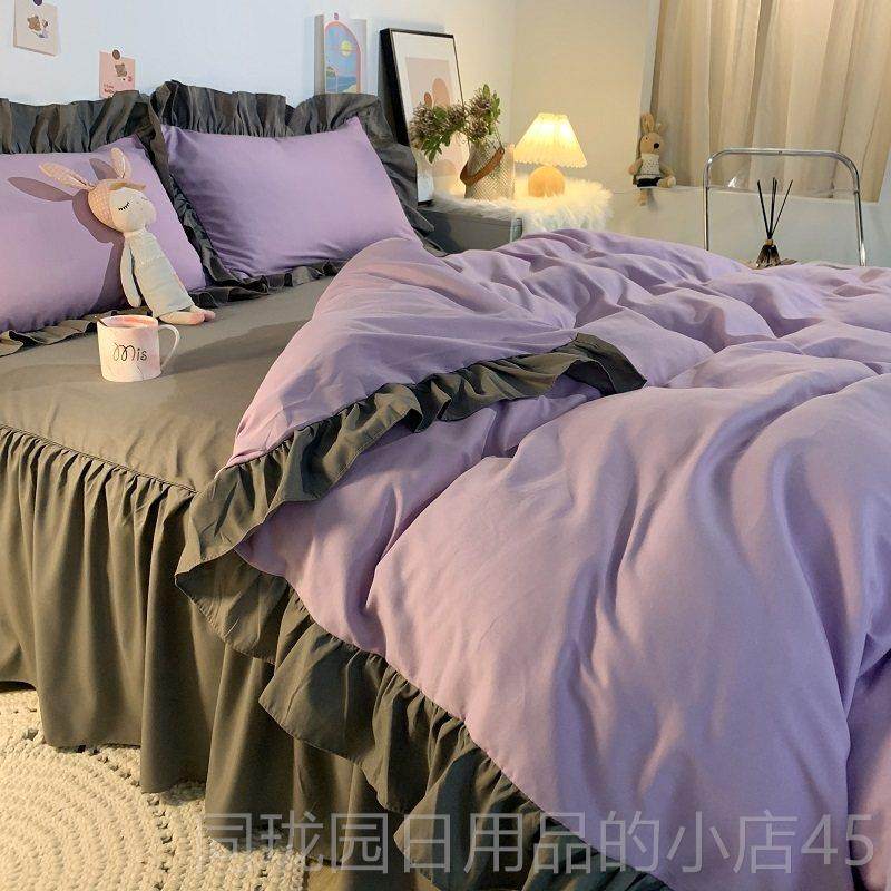 正品ins韩国风床床上用品清新纯色四件套床裙人1.8单套双人被单三