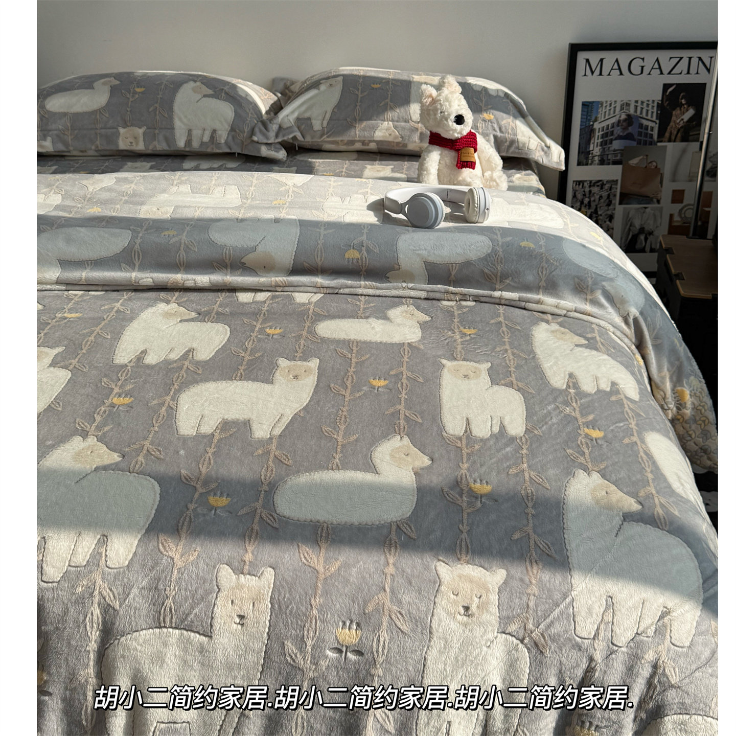 卡通可爱萌驼驼韩国绒四件套秋冬季加厚保暖加绒床单被套床上用品