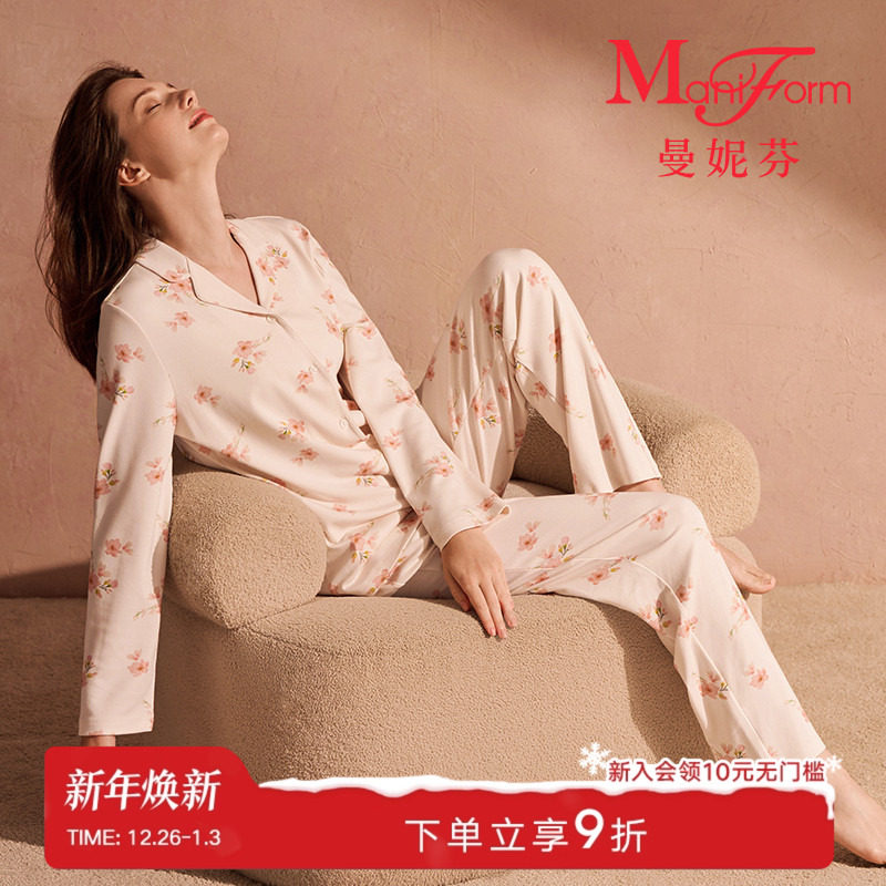 外贸春秋新款女装 居家舒适卡通西装领单排扣大码女生睡衣套装A75