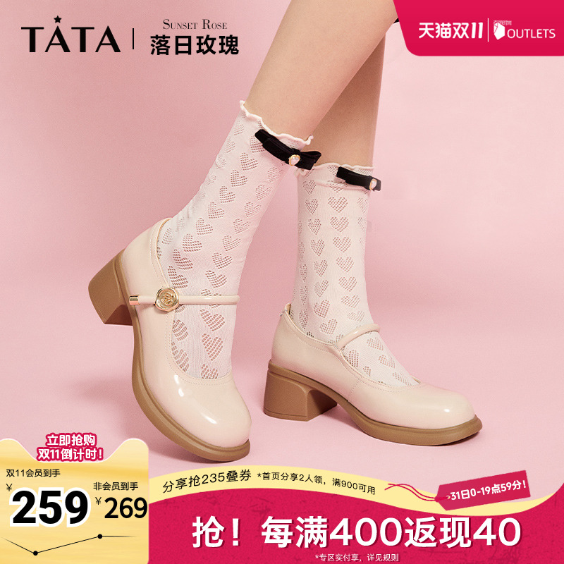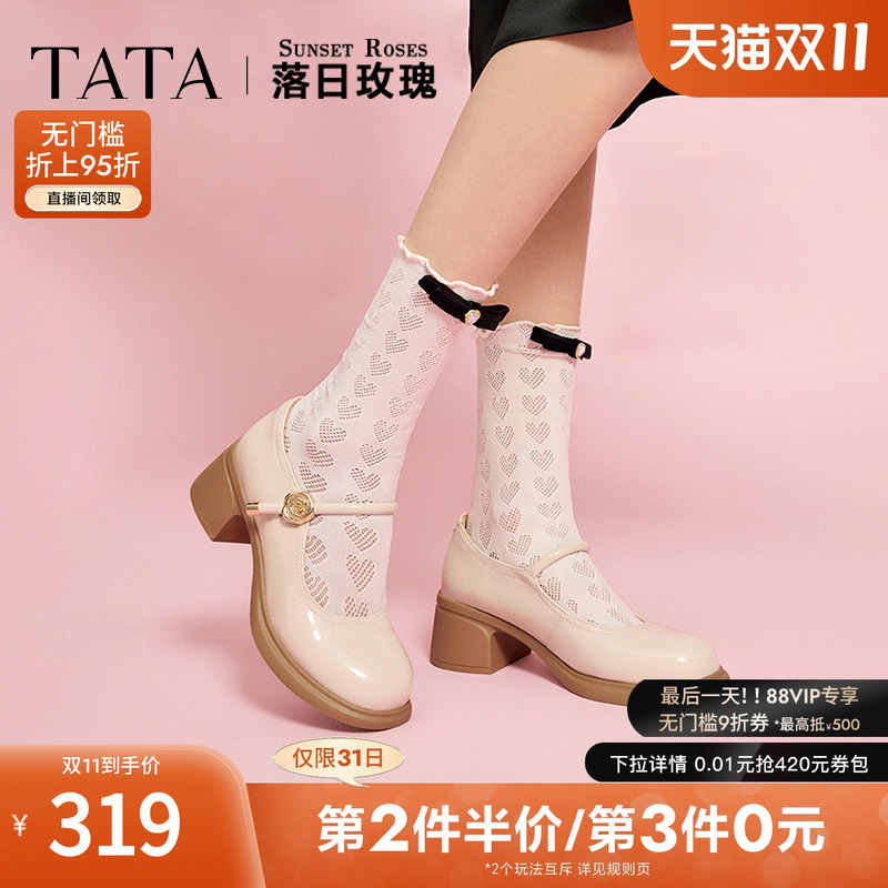 Tata他她落日玫瑰粗跟玛丽珍鞋女圆头小皮鞋单鞋女2025秋WGB07CQ4