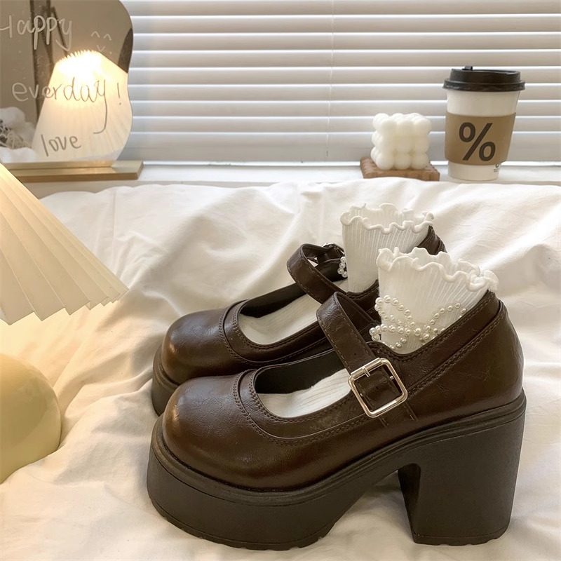 棕色复古英伦风厚底小皮鞋女2025春季新款日系jk配裙子玛丽珍单鞋