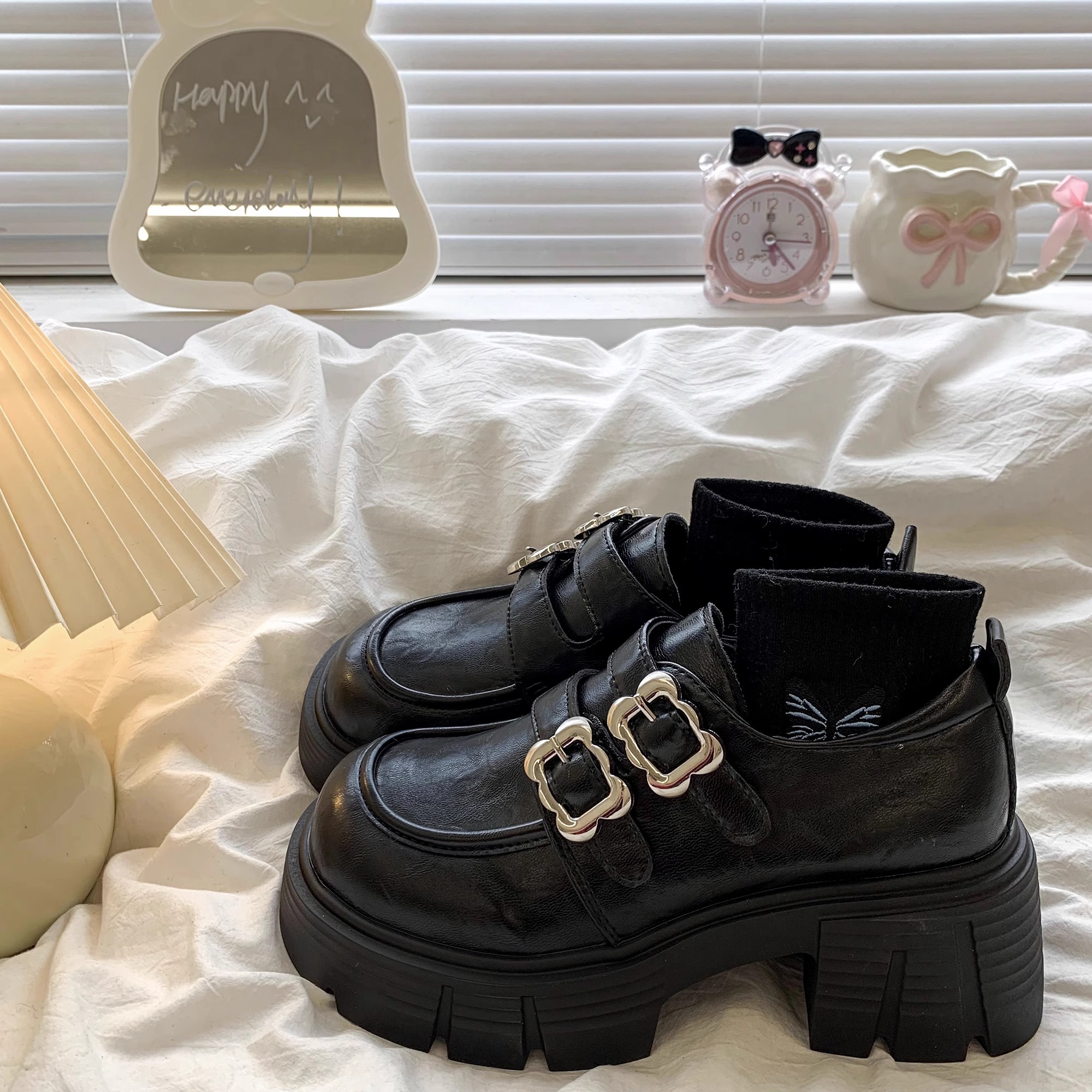 小皮鞋女2025秋季新款百搭复古英伦风增高粗跟黑色乐福单鞋ins潮
