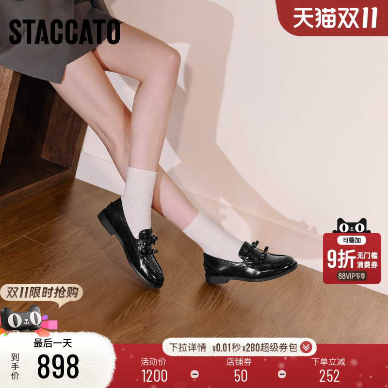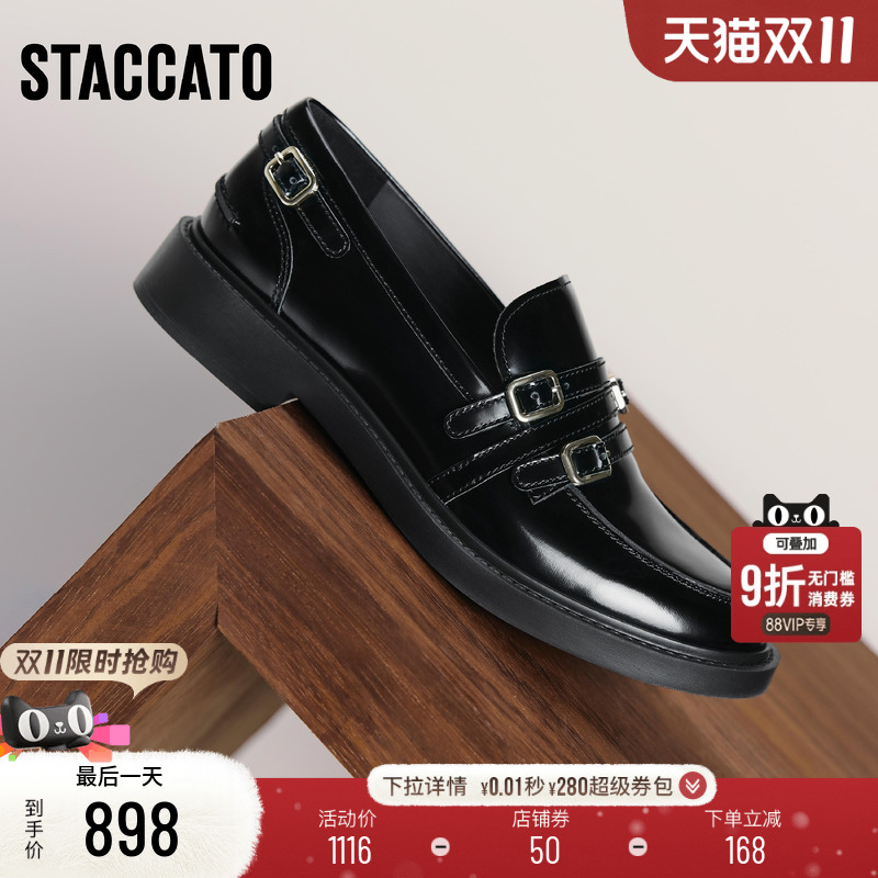 Staccato/思加图2025秋季女鞋黑胶夜曲乐福鞋一脚蹬小皮鞋女EFI07