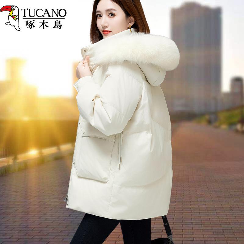 啄木鸟白鸭绒羽绒服女中长款冬季2025年新款大毛领妈妈外套加厚