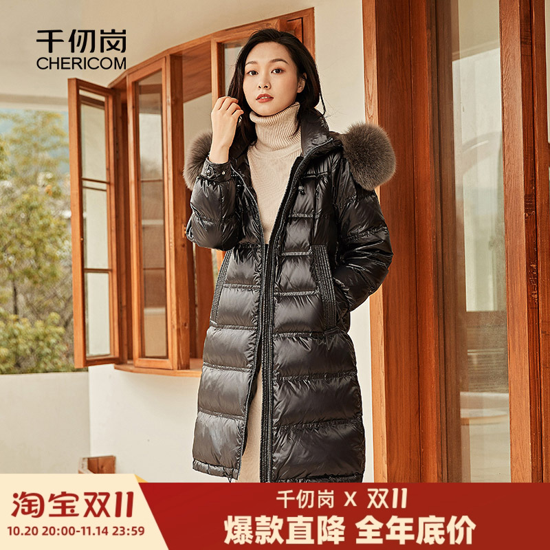 千仞岗2023冬季女士中长款连帽大毛领加厚保暖羽绒服外套简约时尚