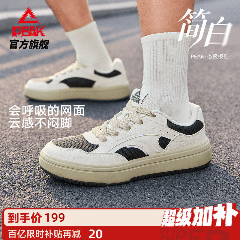 匹克态极简白网面板鞋男夏季新款男鞋透气休闲鞋子厚底防滑运动鞋