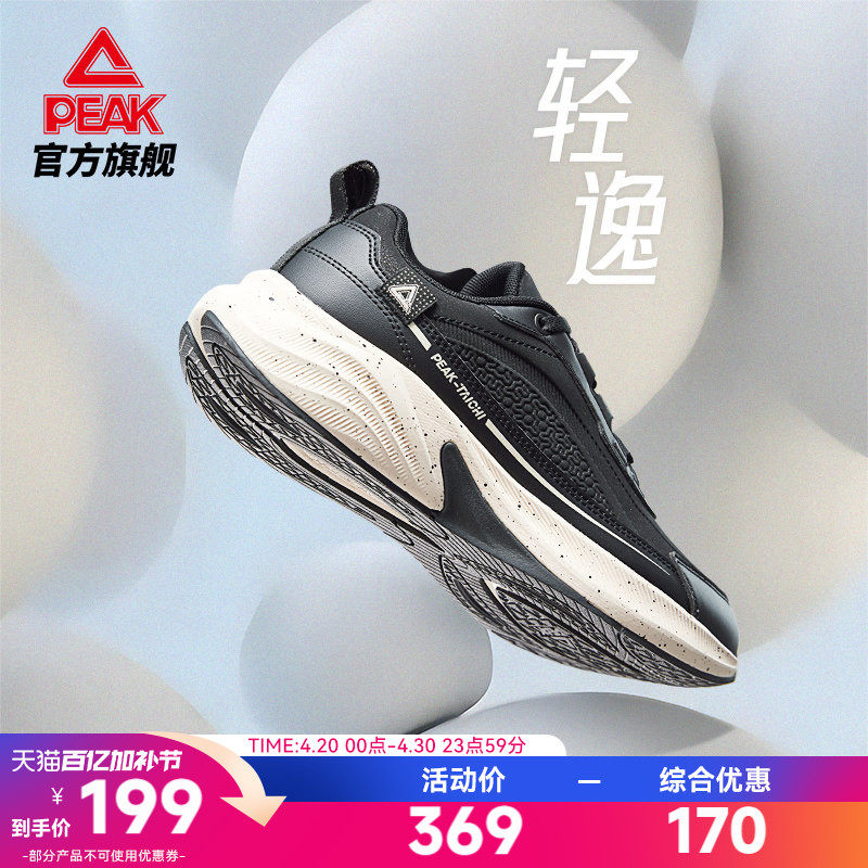 匹克态极轻逸跑步鞋男鞋女鞋夏季新款通勤全黑皮面缓震回弹运动鞋