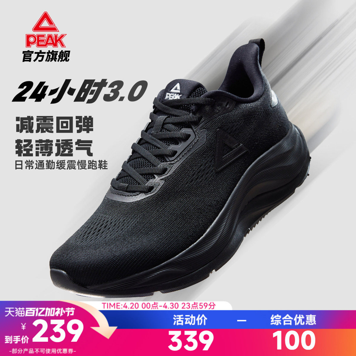 匹克态极24小时3.0黑色缓震跑步鞋男鞋通勤慢跑夏季透气运动鞋子