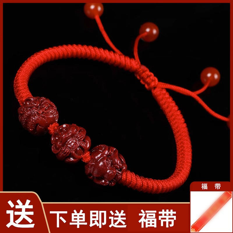 桃木生肖红绳手炼三合一贵族手绳牛马龙狗羊猴鸡狗猪猪年三合一贵