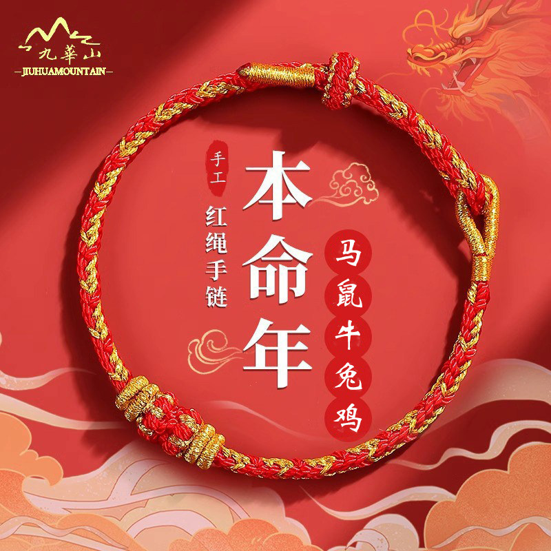 九华山2026年本命佛太岁红绳手链串马牛鼠兔鸡男女礼物法物流通处