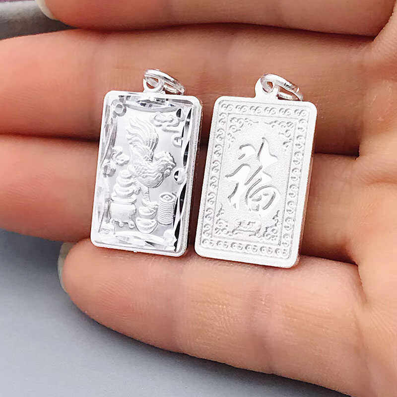 99足纯银十二生肖银吊坠鼠牛虎兔龙蛇马羊猴鸡狗猪红绳手链小挂件