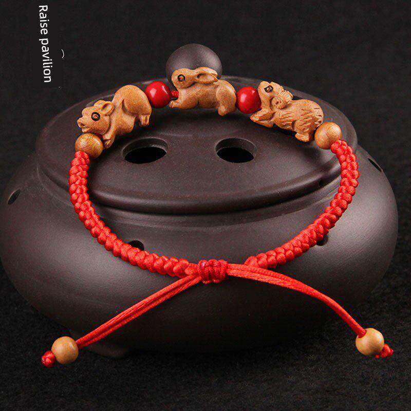 2026年桃木三合六合手链生肖鼠兔龙鸡马鼠吉祥物随身红绳手绳男女