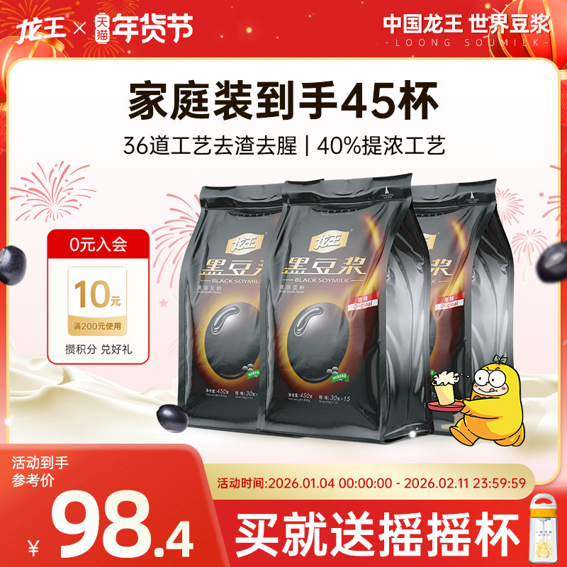 龙王黑豆豆浆粉450g*3包囤货装美味豆浆营养健康早餐冲饮速溶豆粉