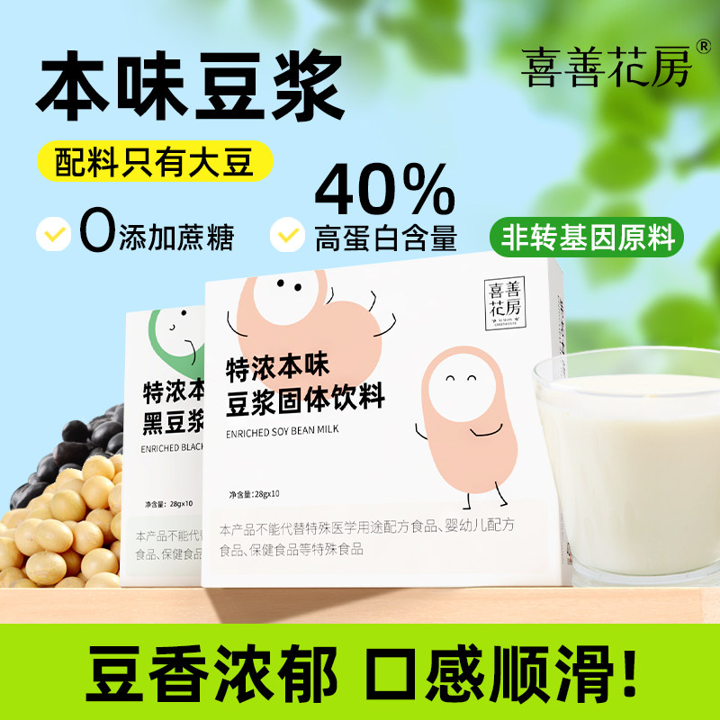 喜善花房特浓本味豆浆粉黑豆豆浆无加糖高蛋白豆浆粉健康早餐冲饮