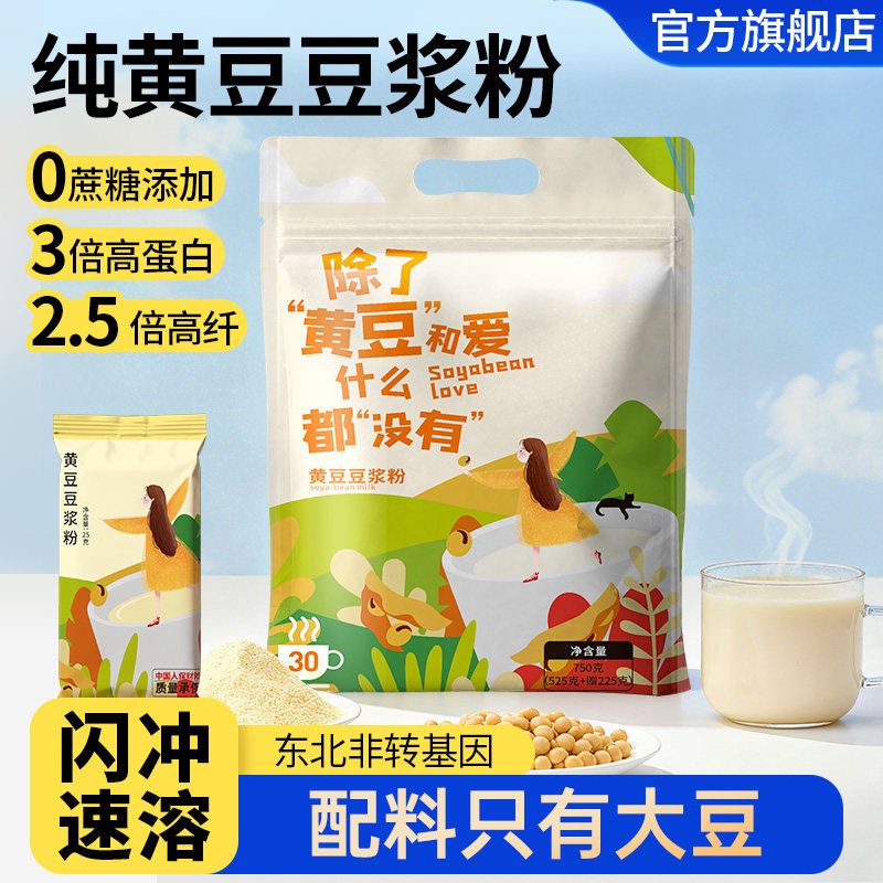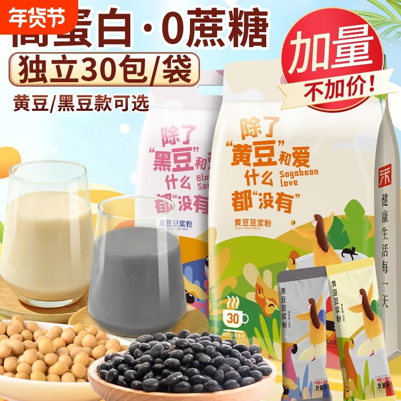 纯豆浆粉原味无糖精黄豆黑豆豆浆孕妇专用早餐豆粉独立包装旗舰店