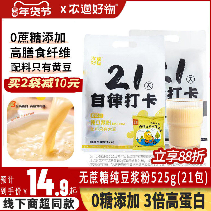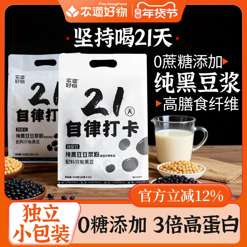 农道好物21天自律打卡无糖精纯豆浆粉原味黄豆黑豆豆浆孕妇豆奶粉