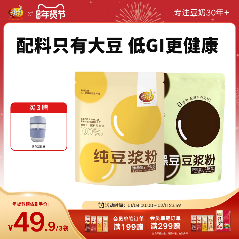 【0糖添加】维维黑豆纯豆浆粉原味高蛋白液断即食代健身早餐孕妇