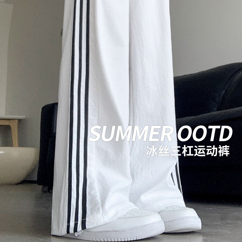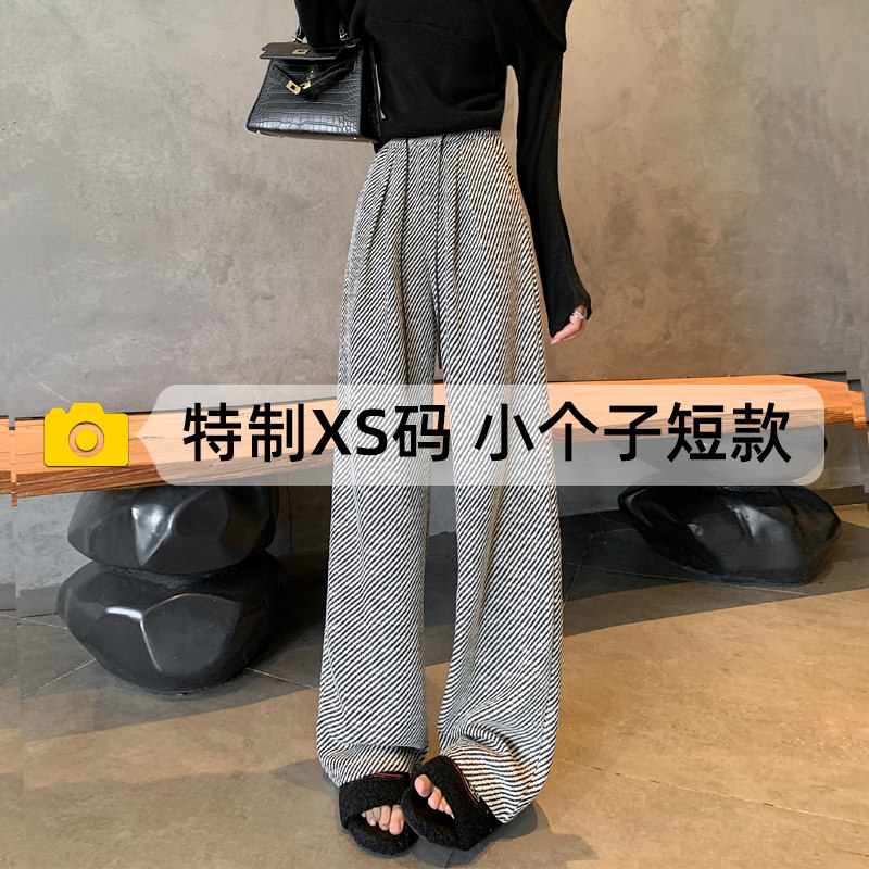速发高级感条纹阔裤腿2024年显款高腰直筒休闲裤15m新高裤子