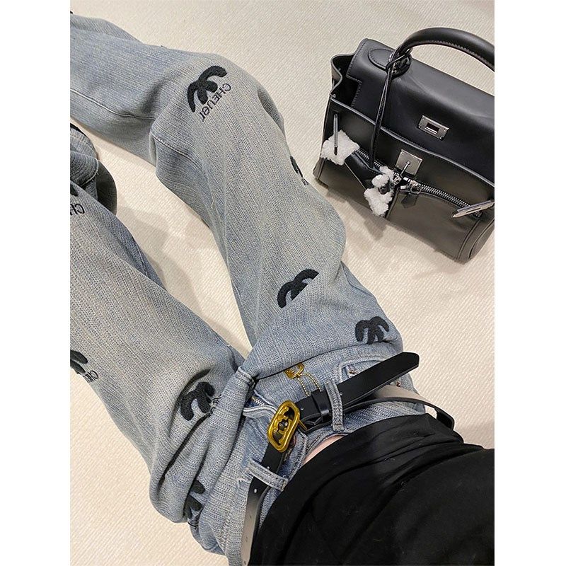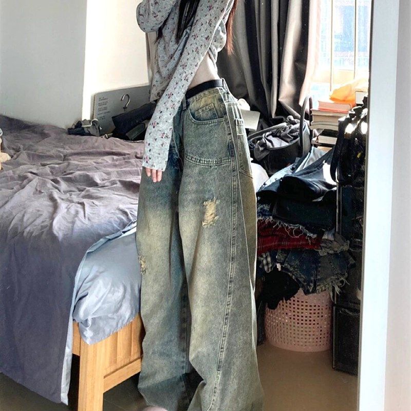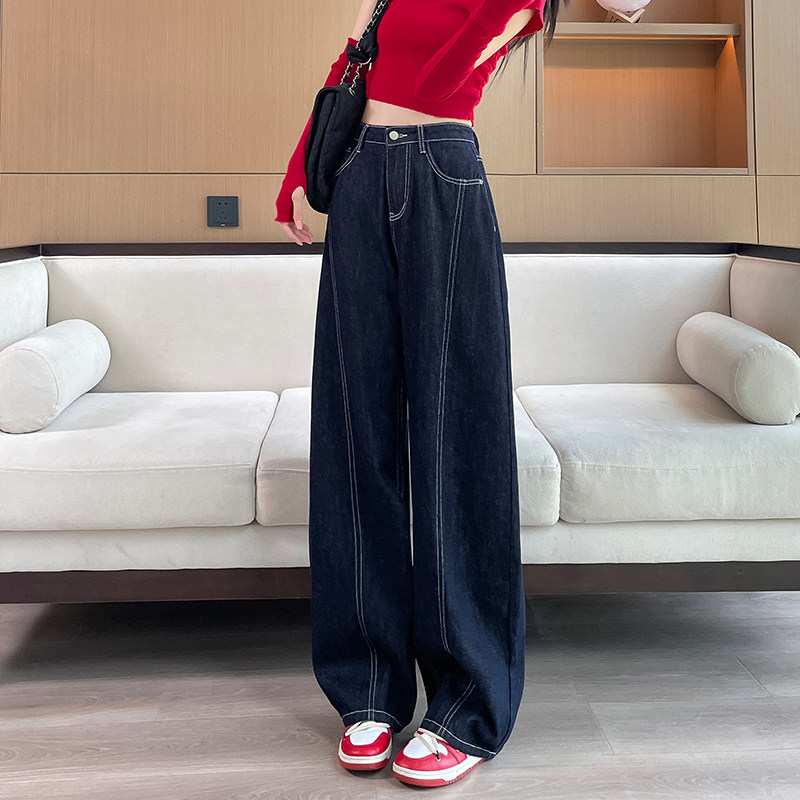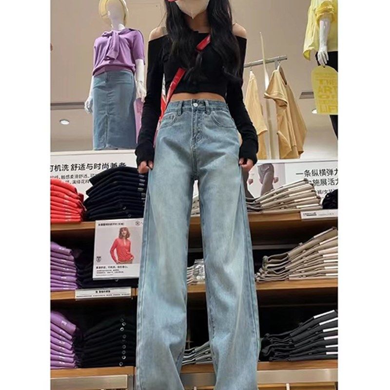 阔休闲筒裤腿牛仔裤女2022秋冬新款时尚高腰直筒宽松显瘦大脚裤