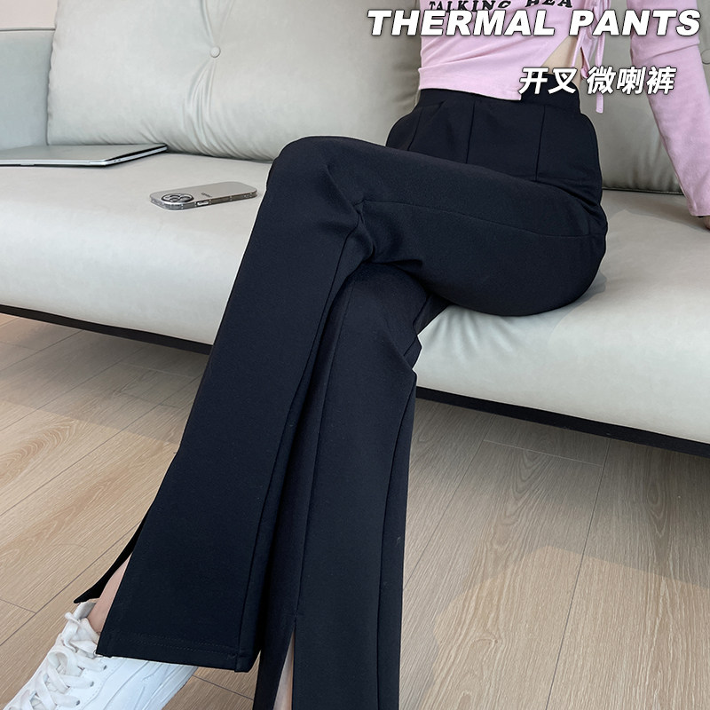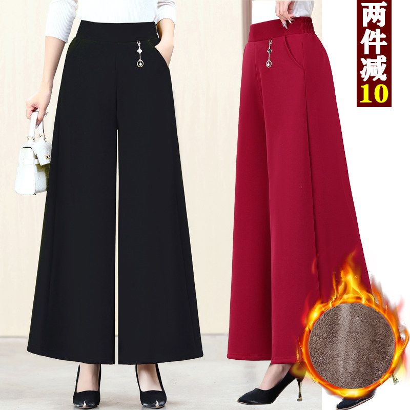速发加绒阔裤腿秋闲高腰垂感大脚裤士长裤冬季保暖休冬裤老年裤子
