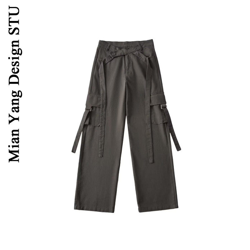 棉洋美式复古街头嘻哈hiphop工装裤女潮直筒飘带阔裤腿休闲拖地裤