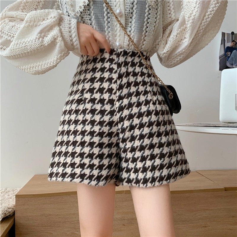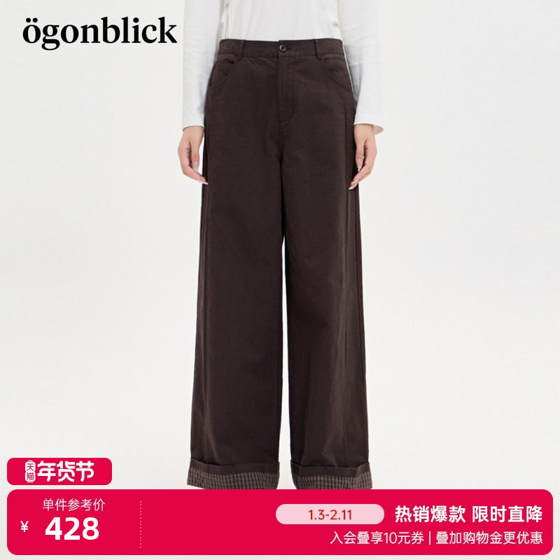 商场同款北欧时刻美拉德咖色休闲直筒裤女秋冬新格子阔裤腿长裤子