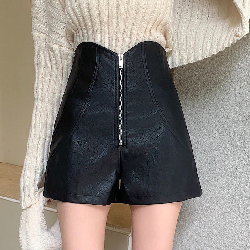 皮裤女2024新款秋冬高腰显瘦加绒裤子冬季休闲裤阔裤腿窄版直筒裤