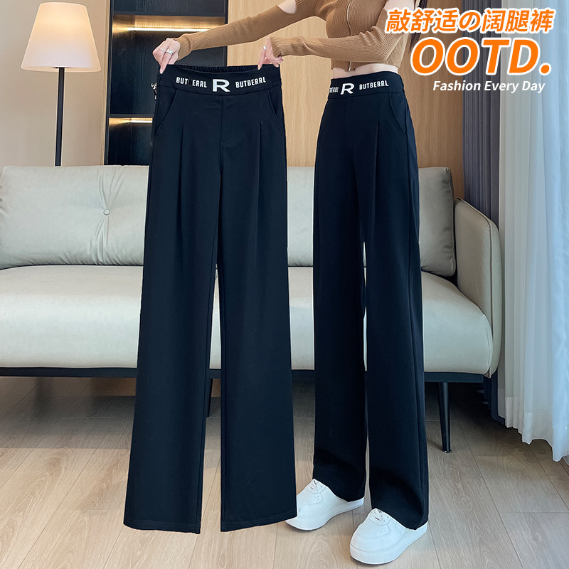 速发窄版阔裤腿高腰垂感2024新百爆款春秋直筒裤士款搭休闲裤
