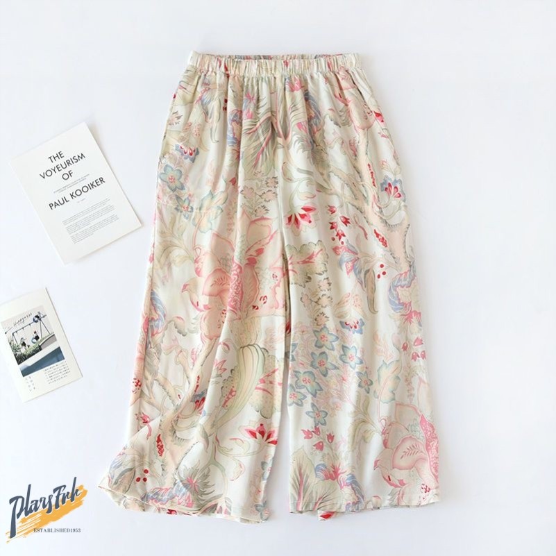 NT春秋薄款睡衣女士棉质印花舒适透气裤腿阔家居服两件套装可外穿