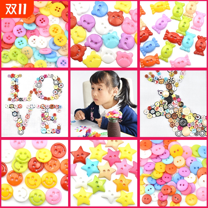 彩色纽扣手工diy扣子幼儿园制作材料儿童创意粘贴画树脂圆形配件