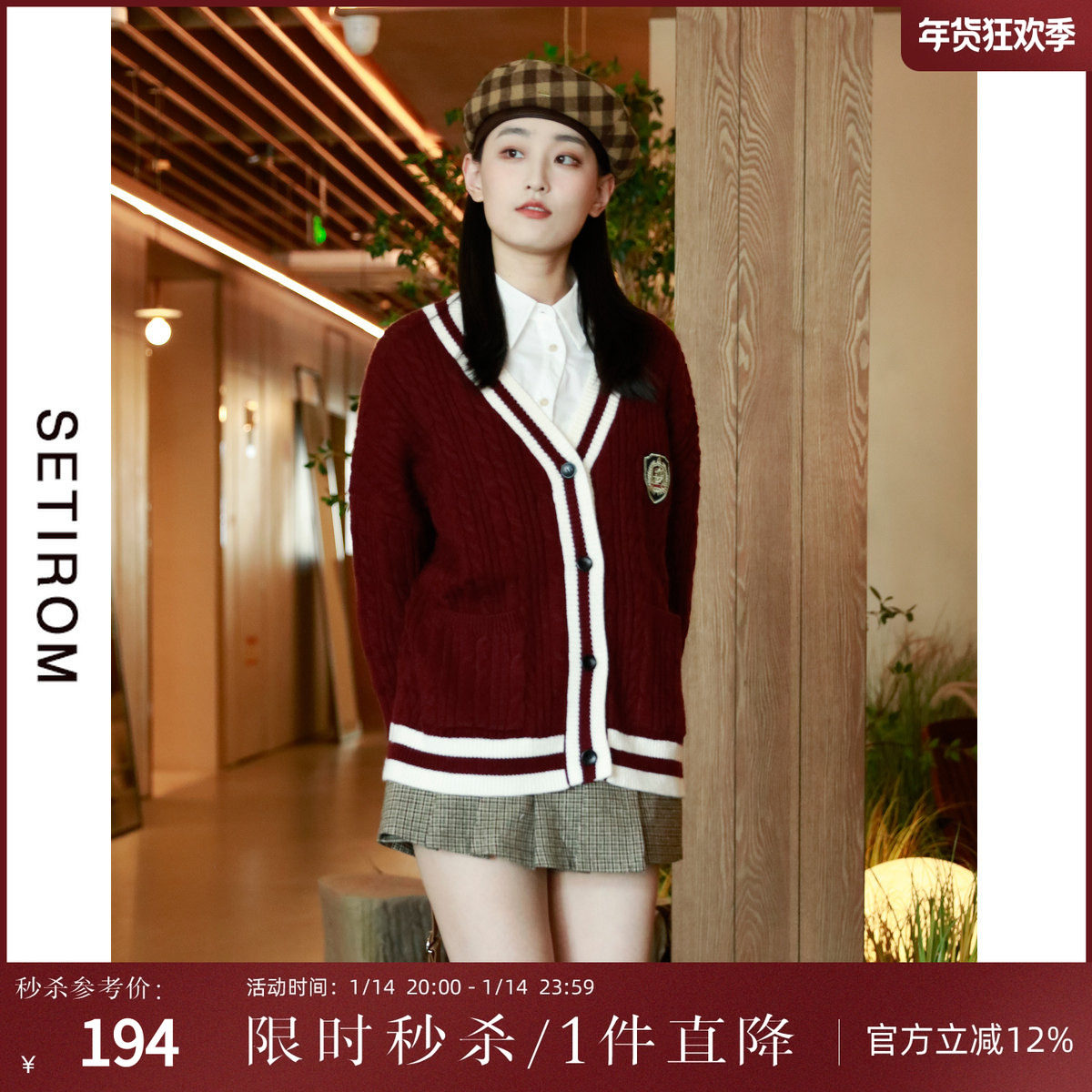 西町村屋针织开衫女秋冬新款英伦学院风撞色中长款外套HD8219220
