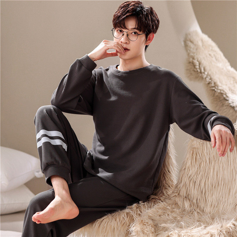 青少年睡衣男孩12岁长袖纯棉15初中高中学生春秋季家居服男生套装